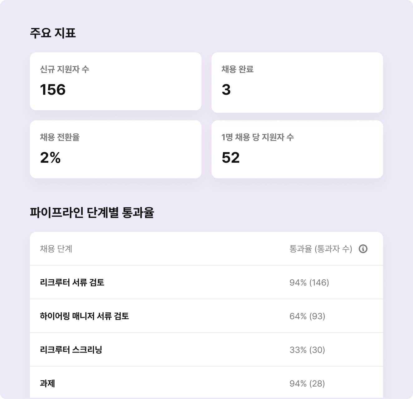 노션은 위하이어 팀도 내부적으로 사용하고 있는 굉장히 편리한 문서 관리 툴인데요 - 이 편리함 때문에 많은 초기 단계 스타트업이 초기에 노션을 사용해서 채용을 관리하고 채용 페이지를 만드는 용도로 사용합니다. 하지만 노션은 문서 작성에 최적화된 소프트웨어고, 위하이어는 처음부터 스타트업 채용을 염두해두고 만든 소프트웨어입니다. 지원자 관리, 채용 공고 게시 및 접수, 브랜딩 된 채용 사이트 제작, 그리고 앞으로 아웃바운드 채용 및 데이터 분석 등 채용에 필요한 많은 것을 제공할 예정입니다.